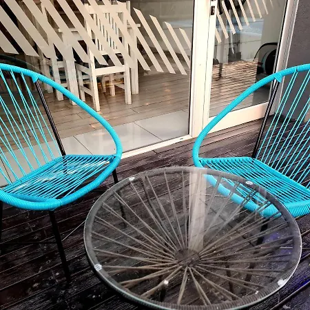 Rummen har också ett komplett kök. Det ligger 400 meter från den närmaste busshållplatsen 6b 7ab. Du kan njuta av soldäck, solterrass och pool på plats.